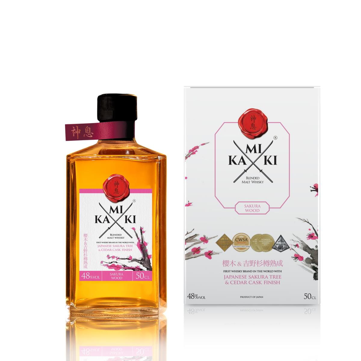 Butelkowanie Kamiki Sakura jest pierwszym na świecie whisky, która jest finiszowana w beczkach wykonanych z drewna wiśni i drewna cedrowego.