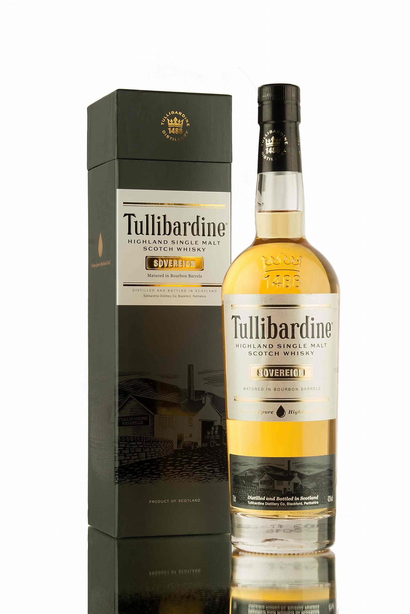 Zapach Tullibardine Sovereign przedstawia nuty wanilii, masła kakaowego i czekolady oraz dębu. W smaku wyczuć można z kolei kremową czekoladę, gruszkę i syrop klonowy, a także słód i ziele angielskie. Wszystko to wygasa do kremowego, lekko pikantnego finiszu z wanilią i cynamonem. Jest to ciekawa propozycja prosto ze szkockiego regionu Highlands.